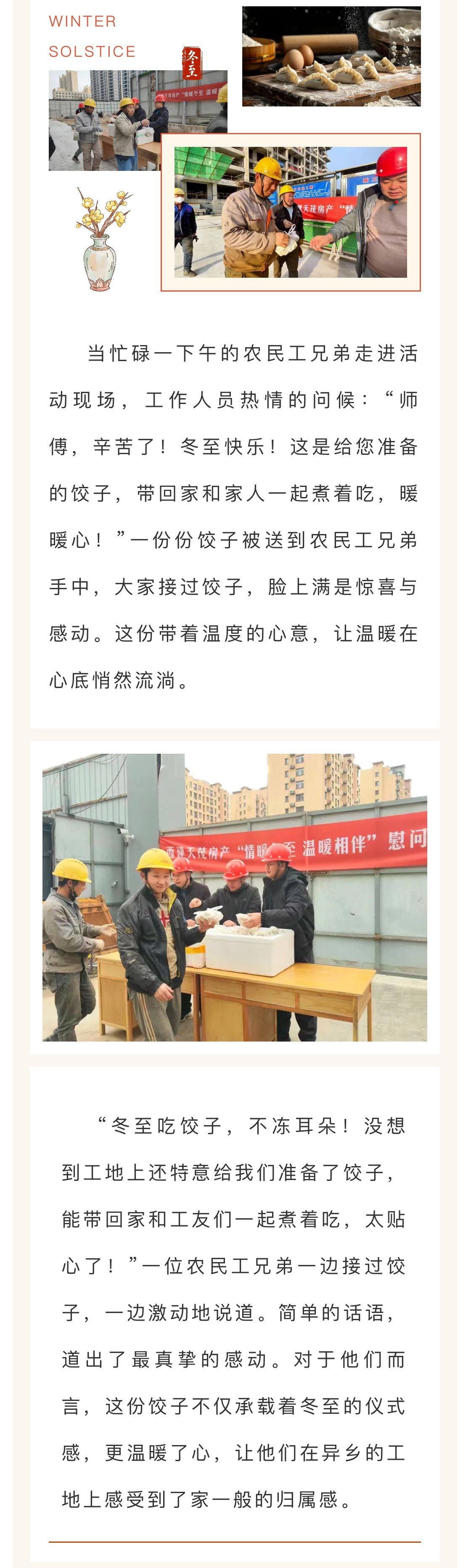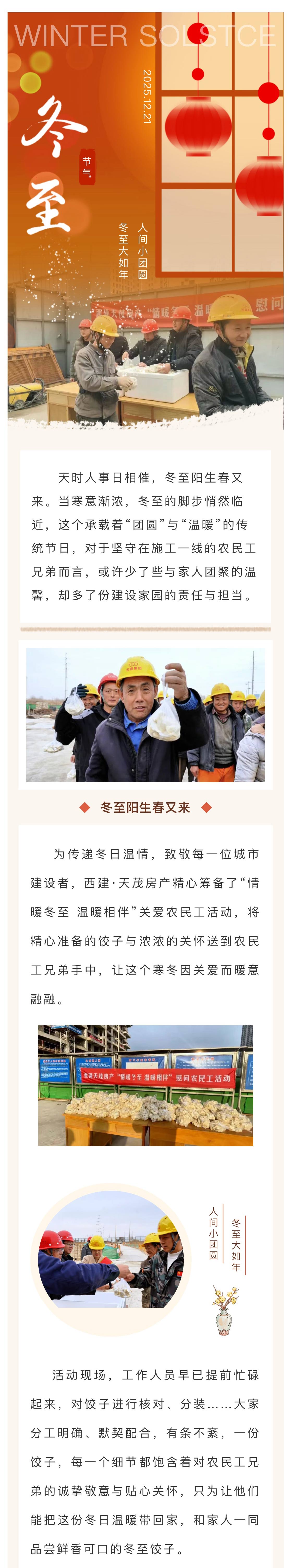 情暖冬至 溫暖相伴 | 西建·天茂房產冬至慰問農民工,致敬城市建設者!